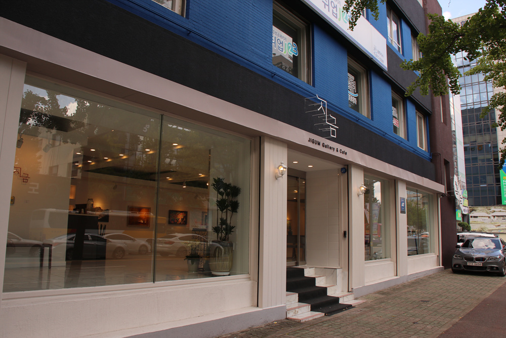 3층 건물인 갤러리 ‘지금’의 1층과 지하 1층이 전시공간으로 단장됐고 1층은 갤러리와 카페로, 지하공간은 전시공간으로만 운영됩니다.