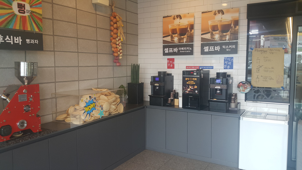 후식으로 뻥튀기를 제공하는데 기계가 계속 뻥튀기를 뽑아내고 있습니다.