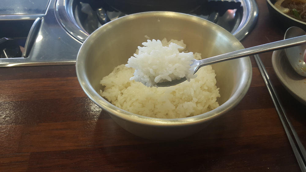 양푼이에 담긴 밥이 맛있게 보입니다.