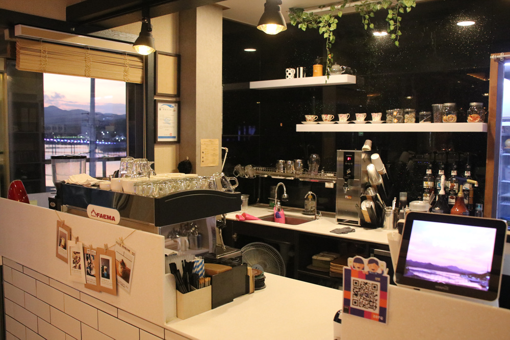 고성의 명소 해지게 다리에서 저녁노을과 함께 맛있는 커피와 디저트를 즐길 수 있는 카페가 있어 좋았습니다.