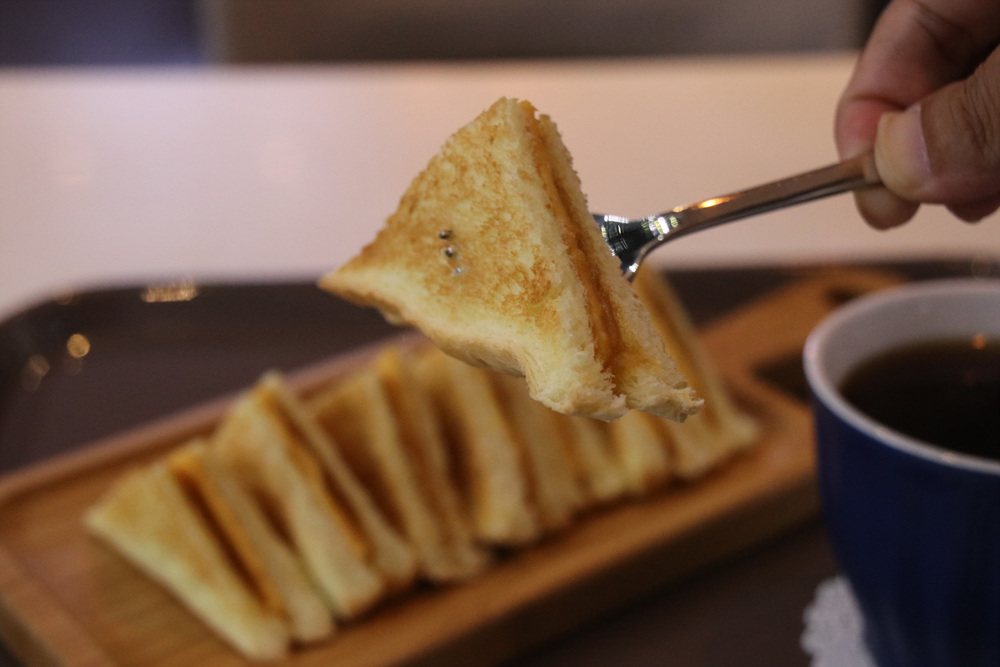 토스트 하나를 4조각으로 잘라서 손님상에 내어준다.