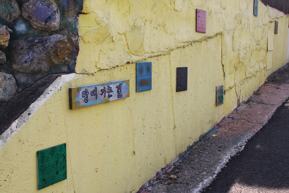 다른 길로 내려가니 이곳에서 올라오시는 분들을 위하여 망대 가는 길이란 표지를 벽화 조형물로 표시하고 있습니다.