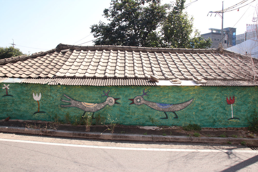 새들의 모양이 단순하여 어린이의 시선에 어울리는 벽화입니다.