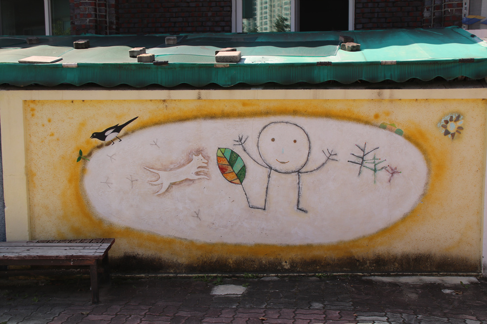 새들의 모양이 단순하여 어린이의 시선에 어울리는 벽화입니다.