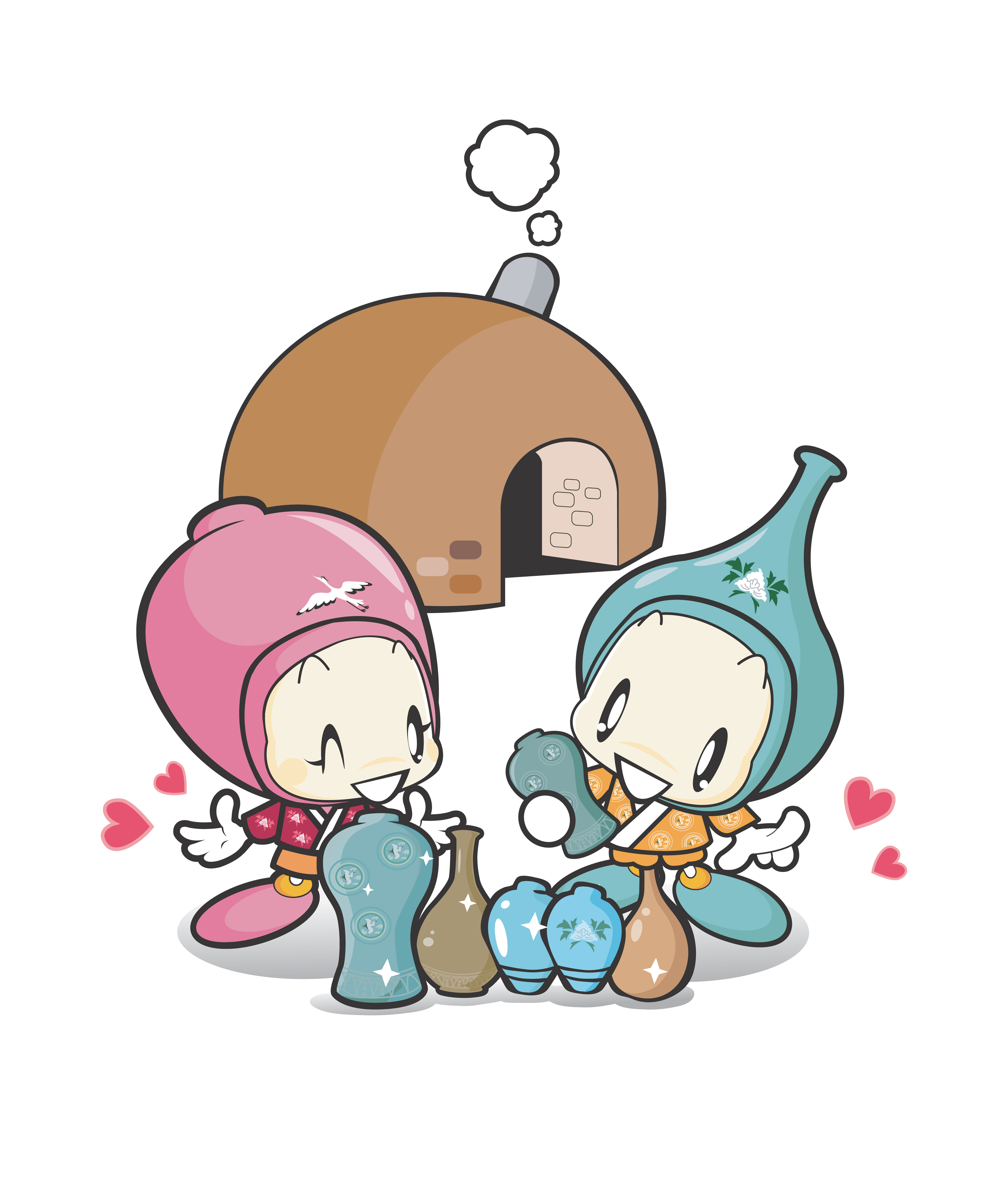 청자의 주병과 매병을 순수한 어린아이의 예쁜 모자로 표현한 캐릭터 이며,