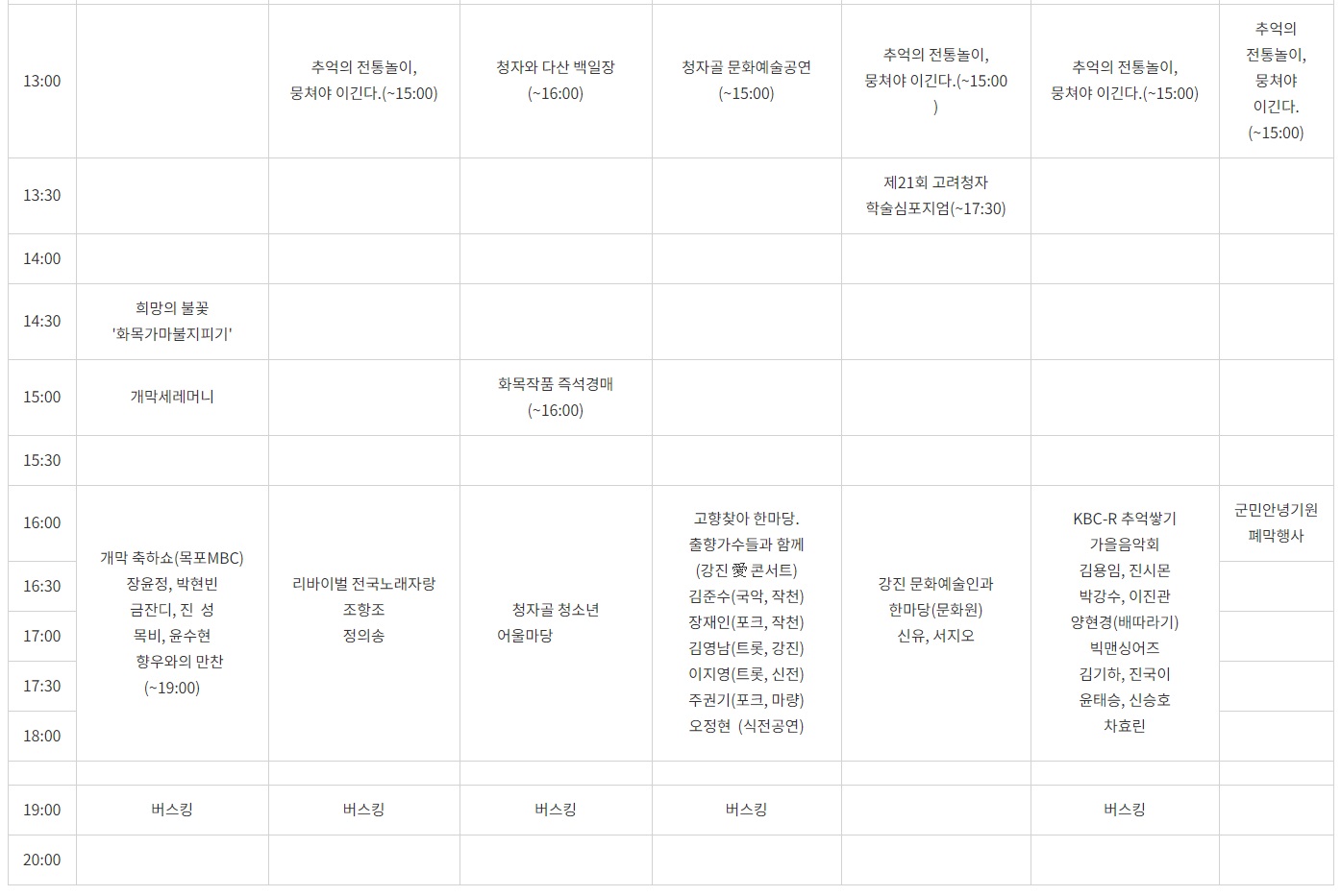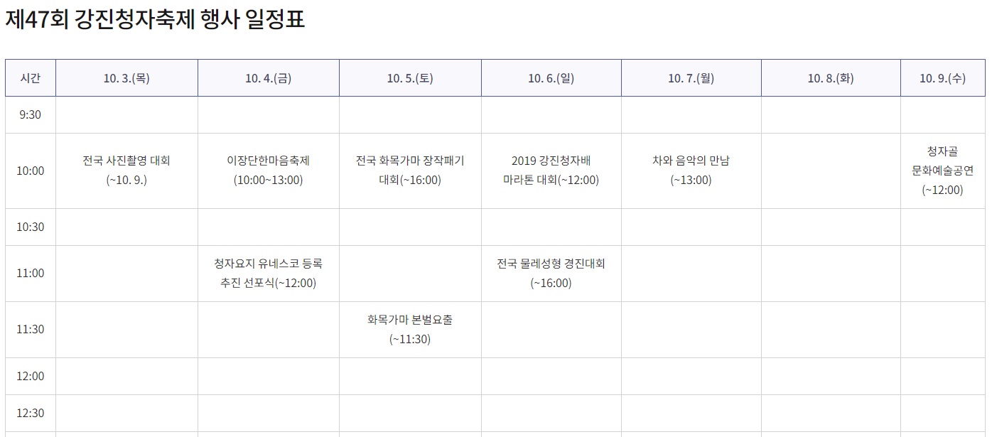 강진청자축제 행사시간표