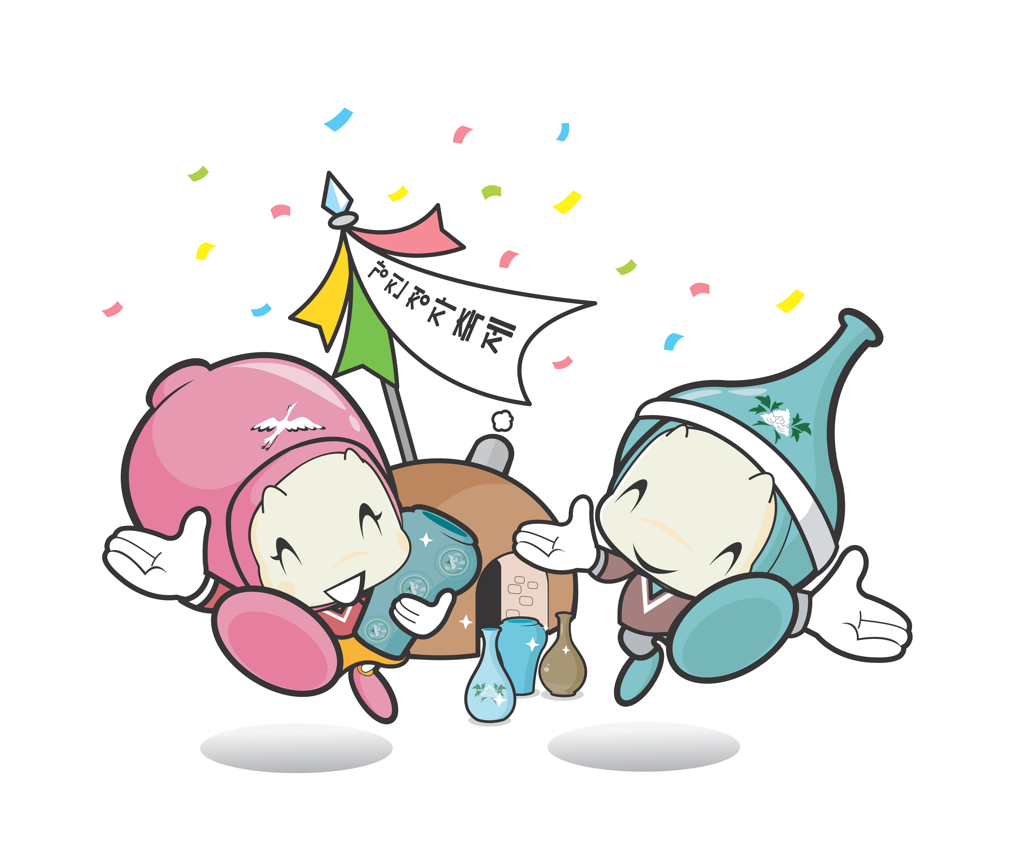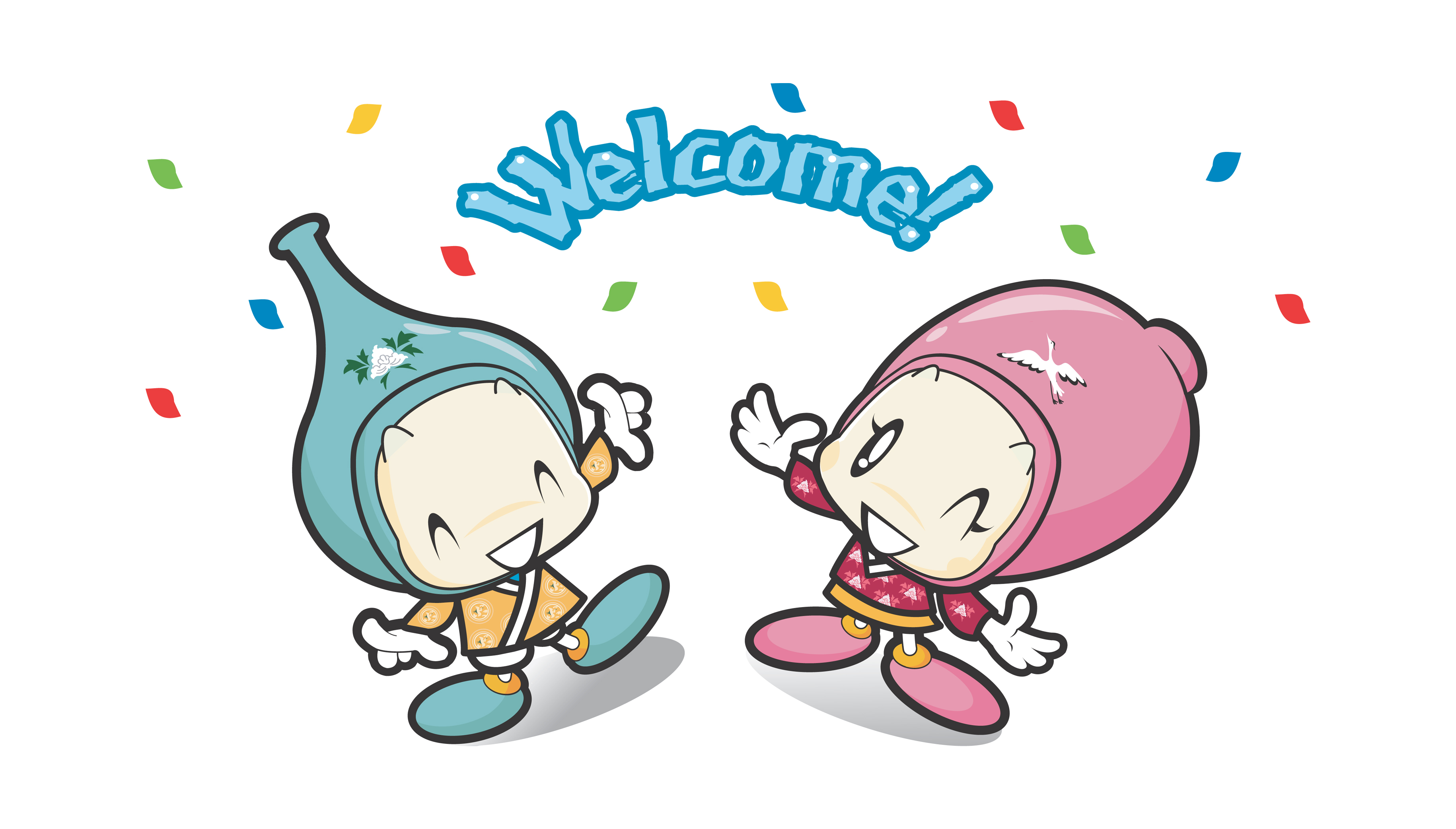 남. 녀 구별이 가능한 커플 스타일로 Blue계열과 PinkRed를 적용하여 청자 고유의 문양(모란과 학)을 넣어 강진청자의 아름다움과 상징성을 강조한 캐릭터입니다.
