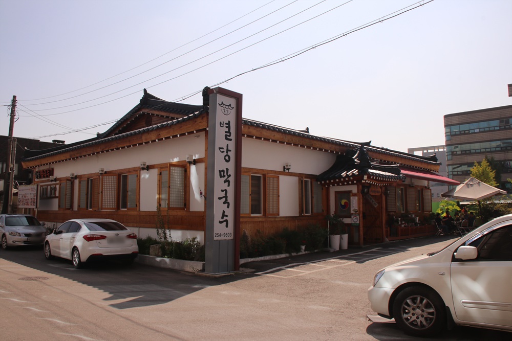 별당막국수는 멀리서 보아도 전통한옥으로 건축되어 눈에 잘 들어옵니다.