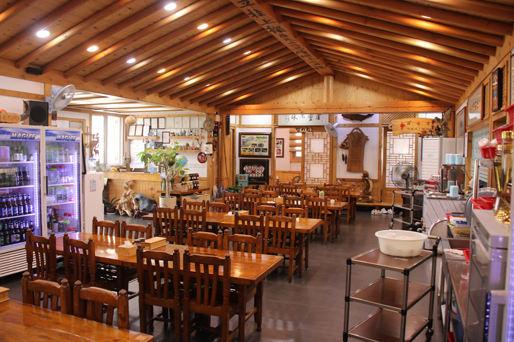 건물 내부 또한 전통한옥의 형태를 그대로 보여주고 있습니다. 밝고 따스한 텅스텐 칼라의 조명은 식당 내부의 분위기를 더울 좋게 만들고 있습니다.