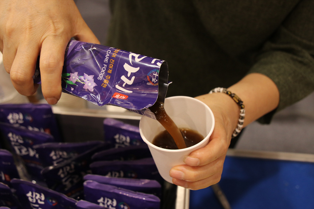 그리고 부스를 돌아다니면 무료시식을 하게 되는 경우도 있는데요, 도라지즙을 마셔보았는데 도라지즙이 기관지에 아주 좋다고 합니다.