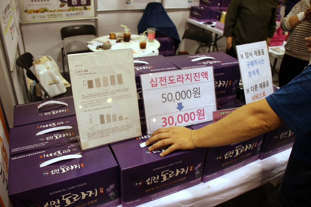 그리고 부스를 돌아다니면 무료시식을 하게 되는 경우도 있는데요, 도라지즙을 마셔보았는데 도라지즙이 기관지에 아주 좋다고 합니다.