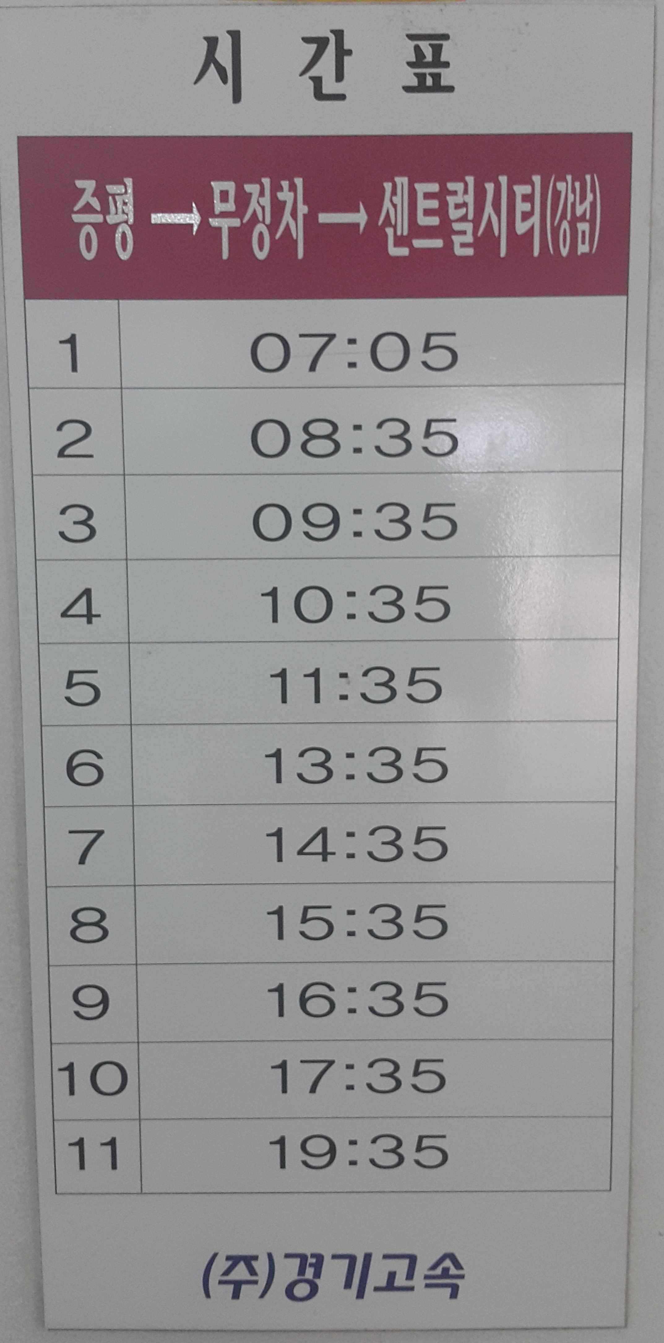 괴산, 증평 센트럴시티(강남) 운행시간표.