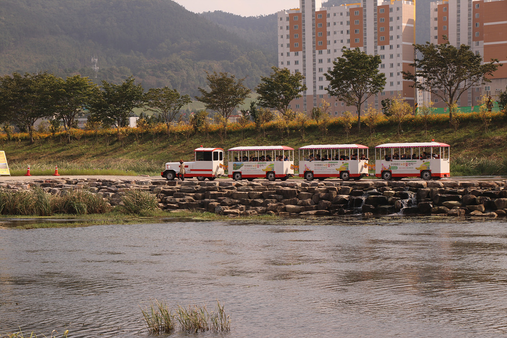장성 황룡강을 열심히 다니고 있는 코끼리열차를 보니 저도 한번 타보고 싶어 집니다.