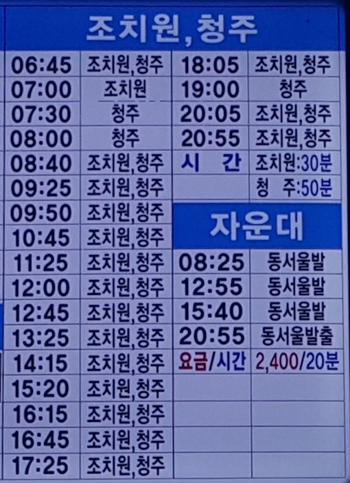 세종시외버스터미널 출발 조치원, 청주, 자운대 방면.