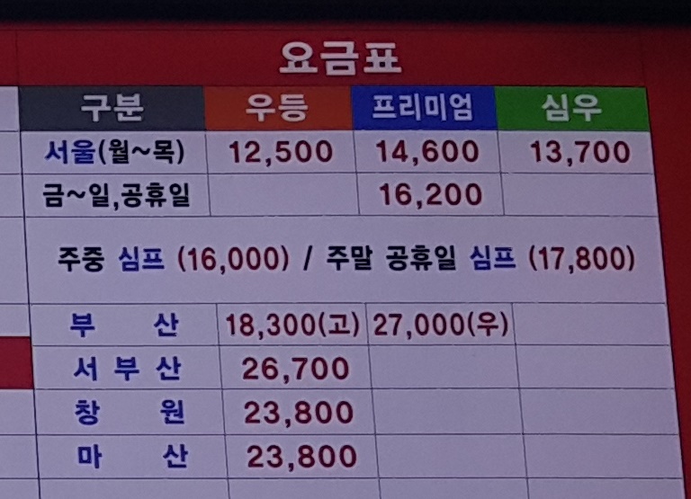 요금표