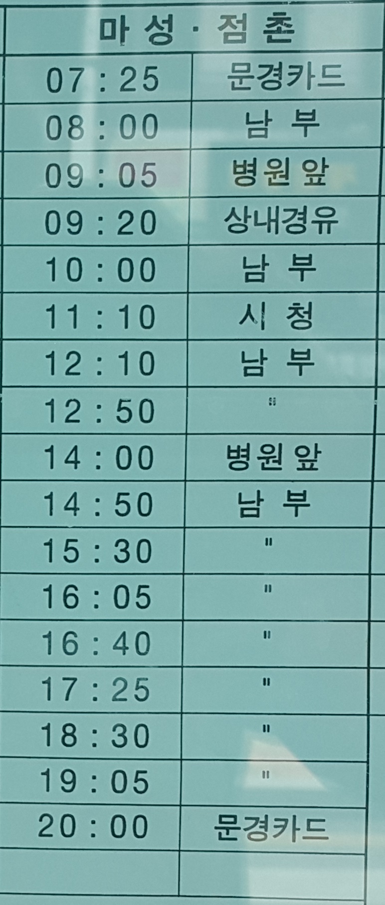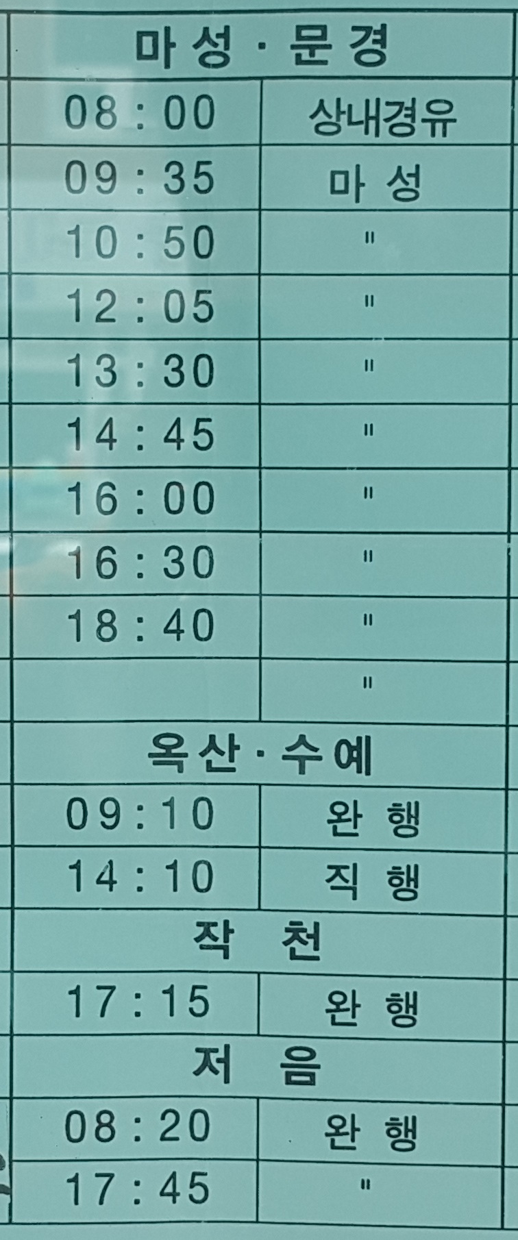 가은 아자개장터 시외버스터미널 출발 마성, 문경, 옥산, 수예, 작천, 저음 방면.