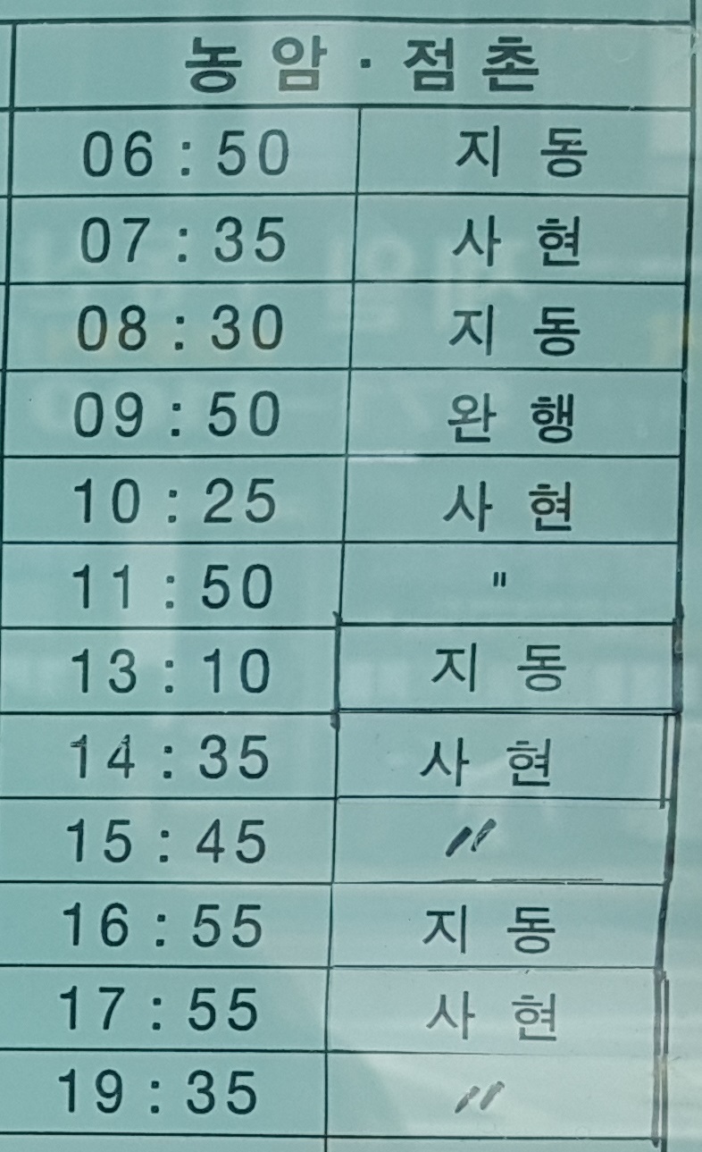 가은 아자개장터 시외버스터미널 출발 농암, 점촌 방면.