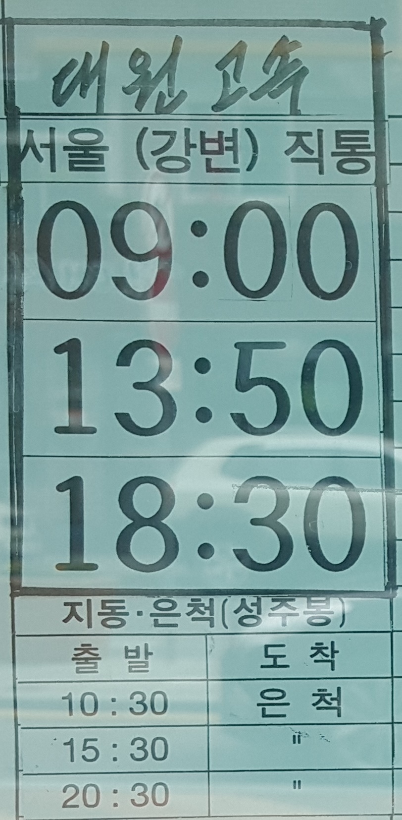 가은 아자개장터 시외버스터미널 출발 서울, 지동, 은척(성주봉) 방면.