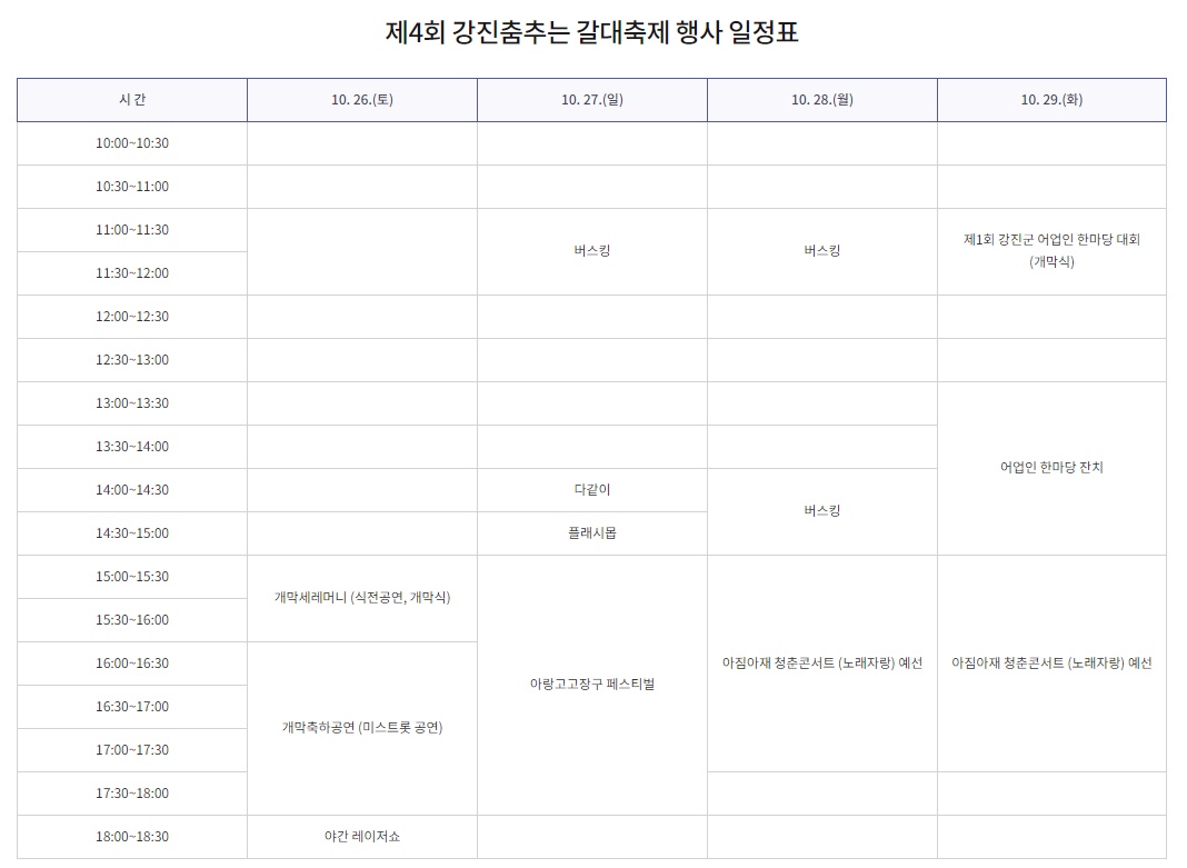 10. 26.(토), 10. 31.(목), 11. 1.(금), 11. 2.(토)