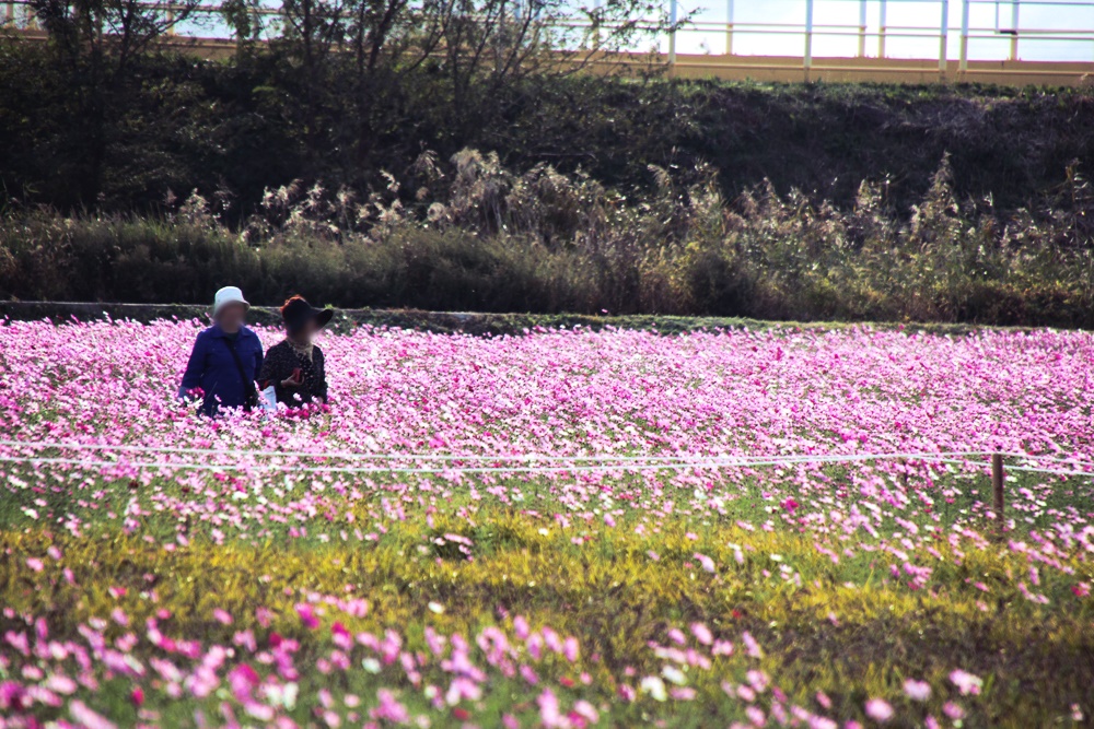 생태공원에는 갈대뿐만 아니라 가을꽃의 대명사 코스모스도 볼 수 있어 사진 찍기에도 좋습니다.