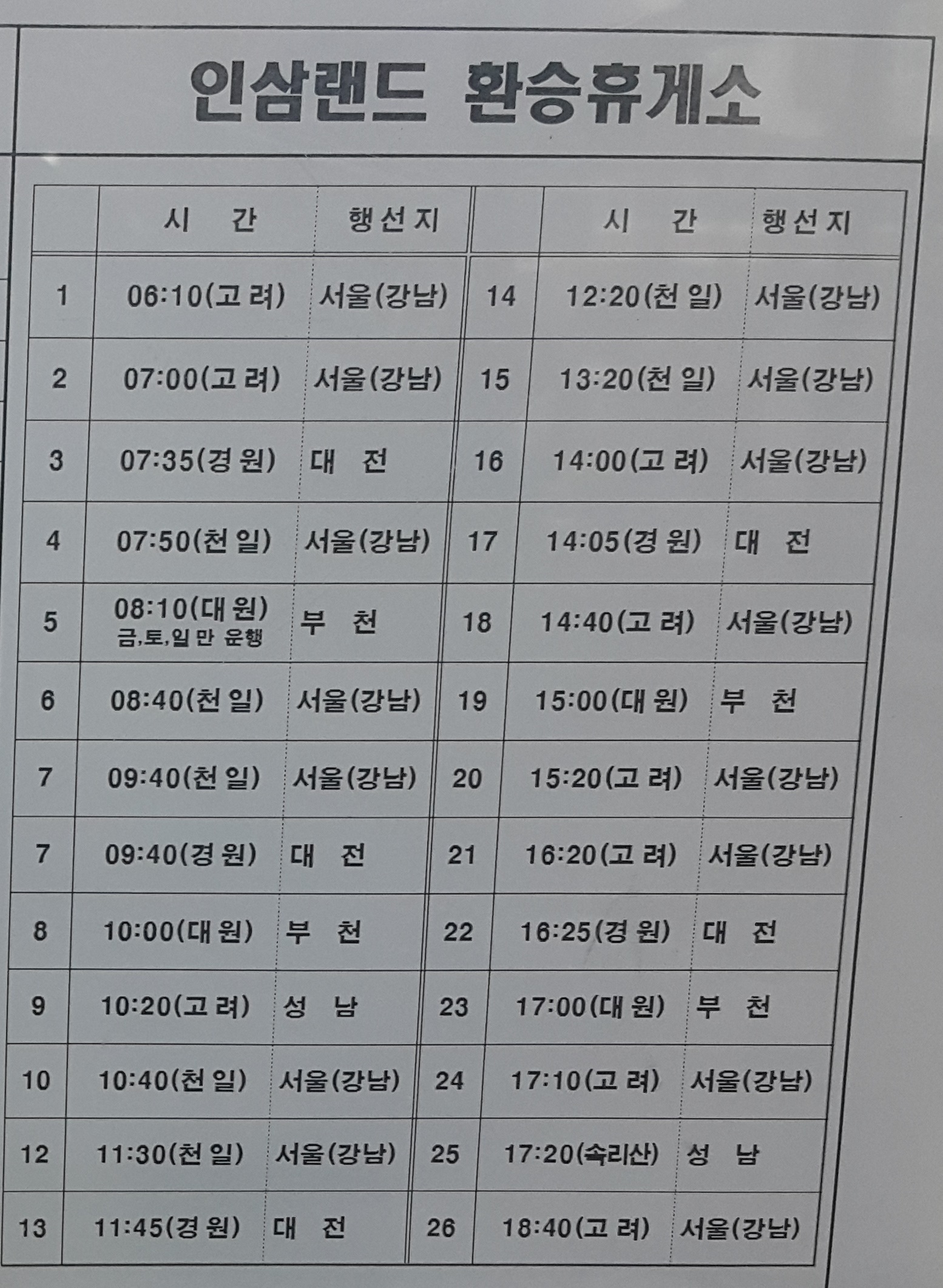 인삼랜드 환승휴게소 시간표