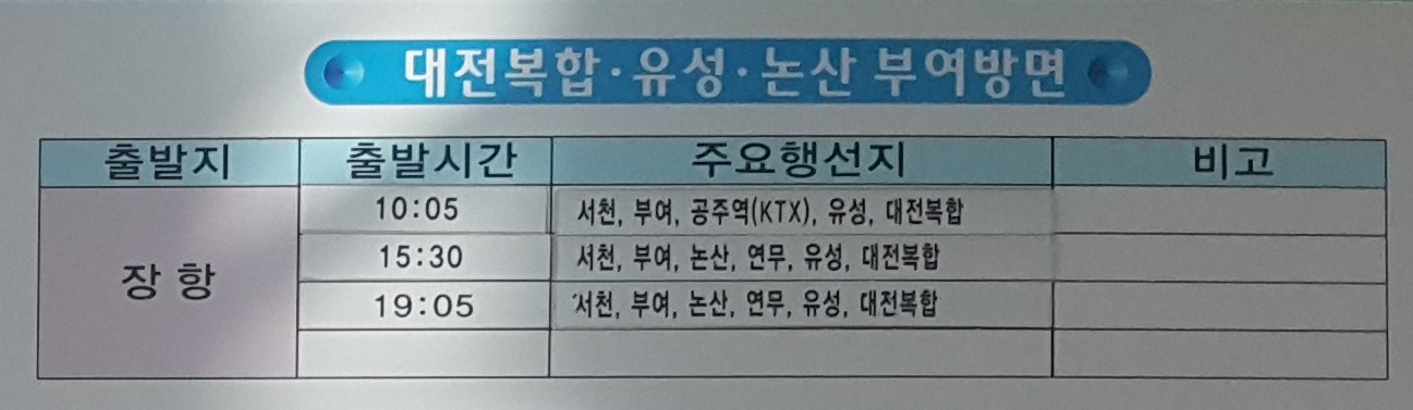 장항 출발 대전복합, 유성, 논산, 부여 방면.