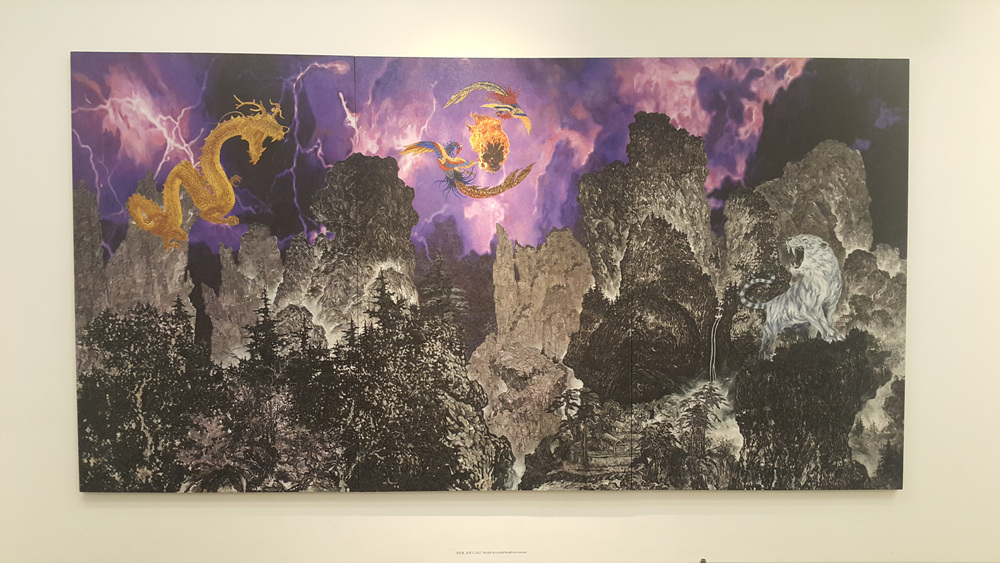 정진용, 창생기, 2017, Acrylic & crystal beads on canvas
