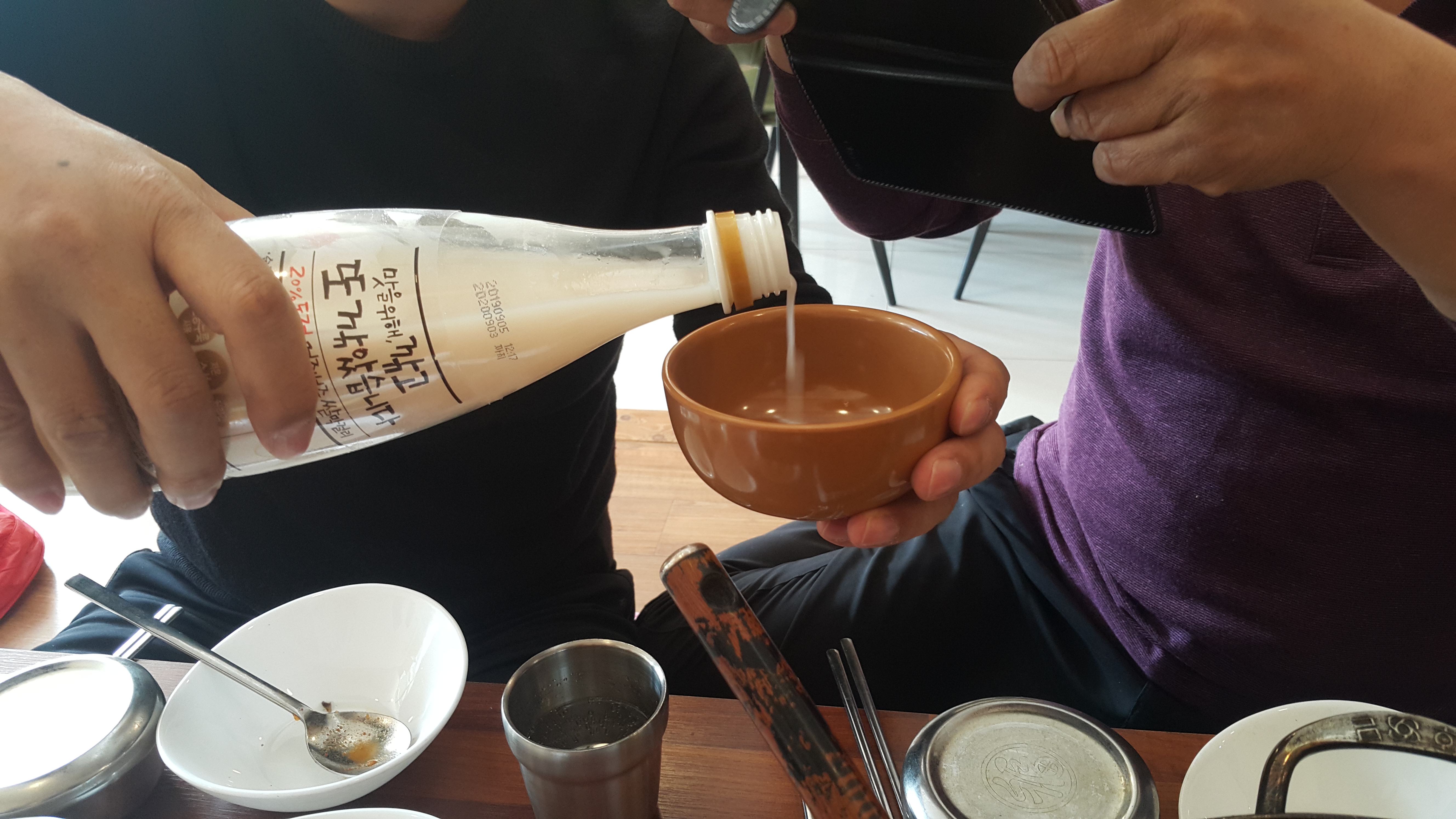 경주까지 와서 식사를 하는데 막걸리가 없으면 서원하다 하여 막걸리 따르고