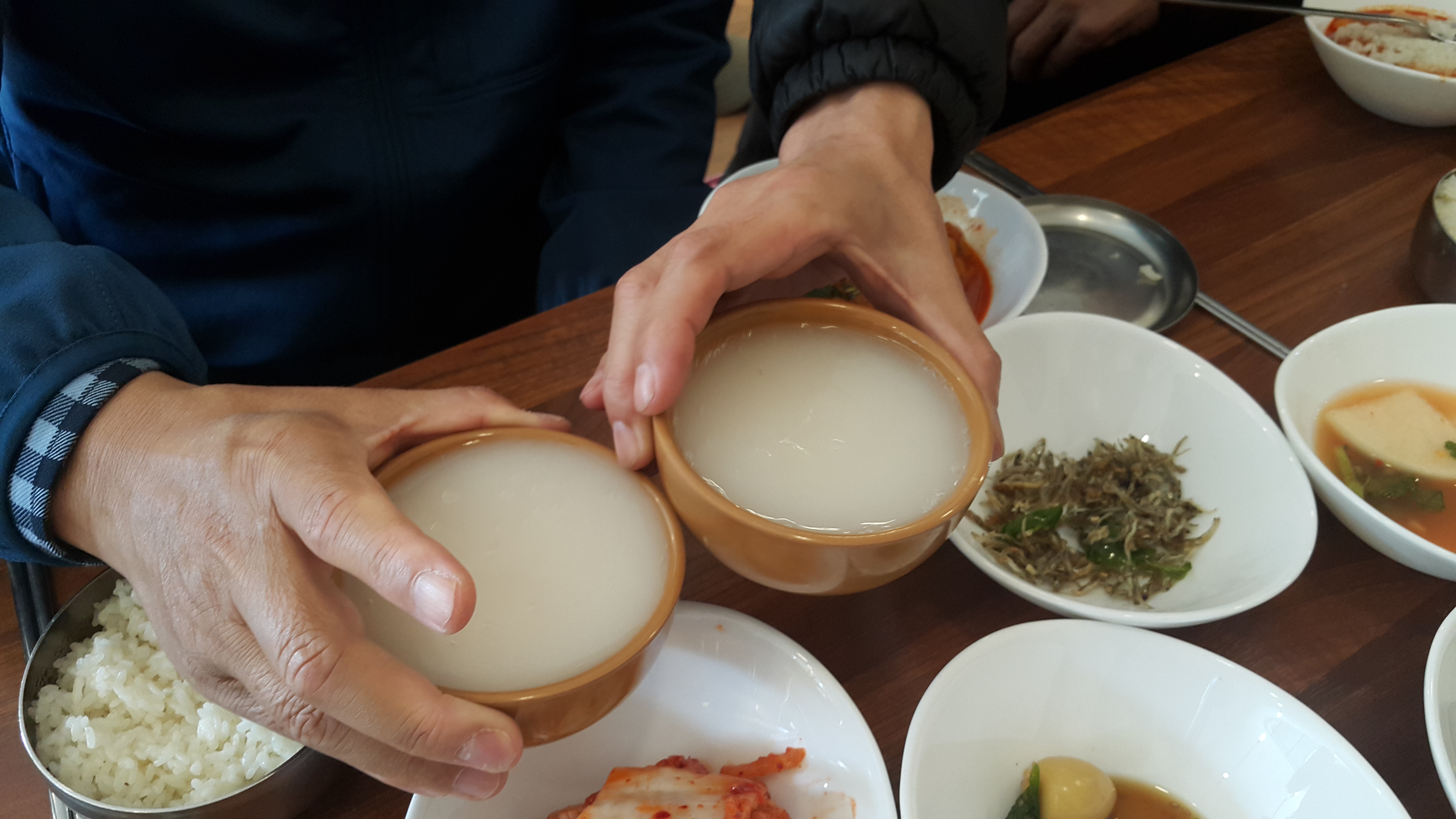 맛있어 보이는 막걸리를 서로 쨍 하여 본다.