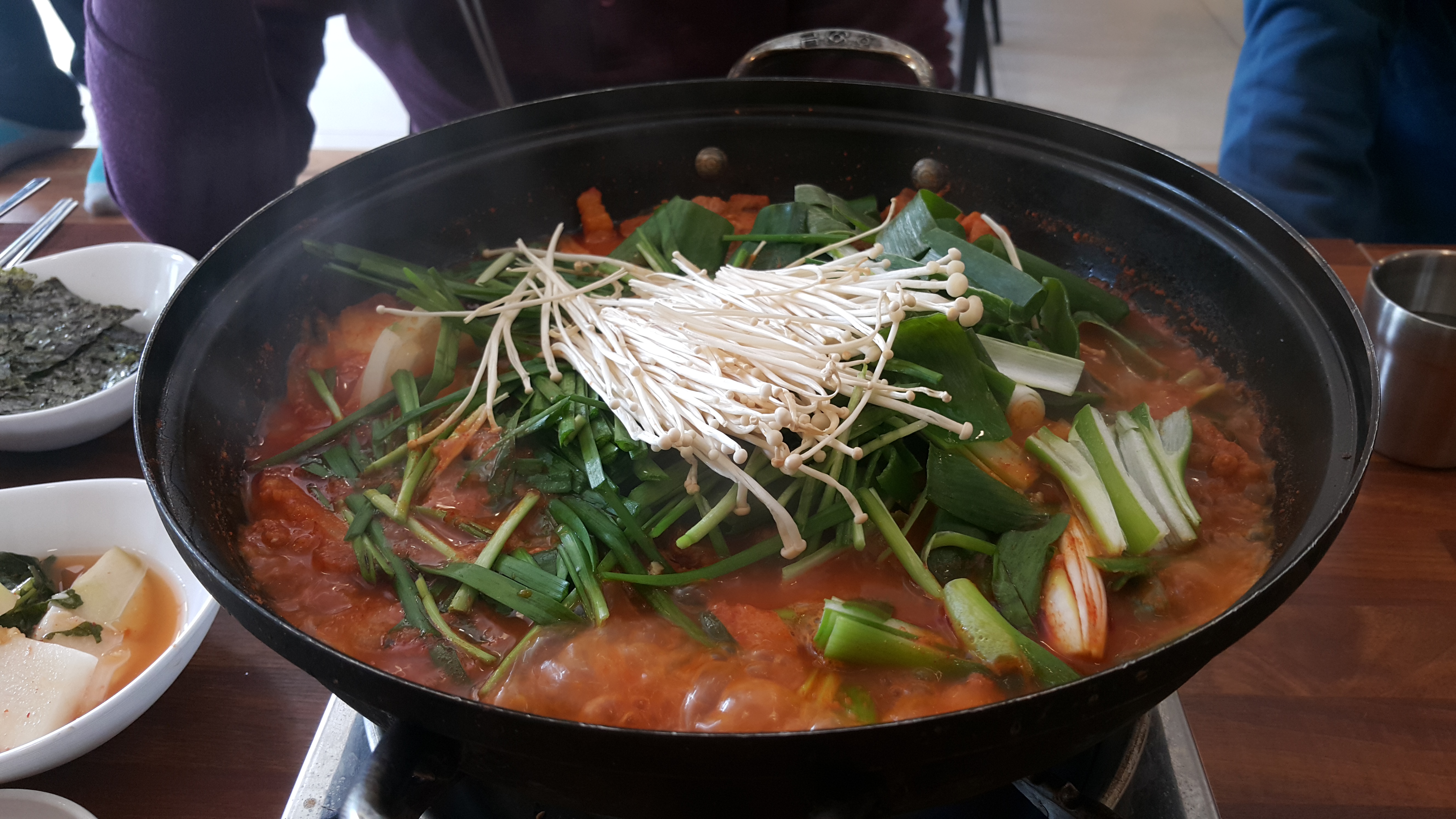 기본 상과 짜글이가 가스레인지위에 올려진다.