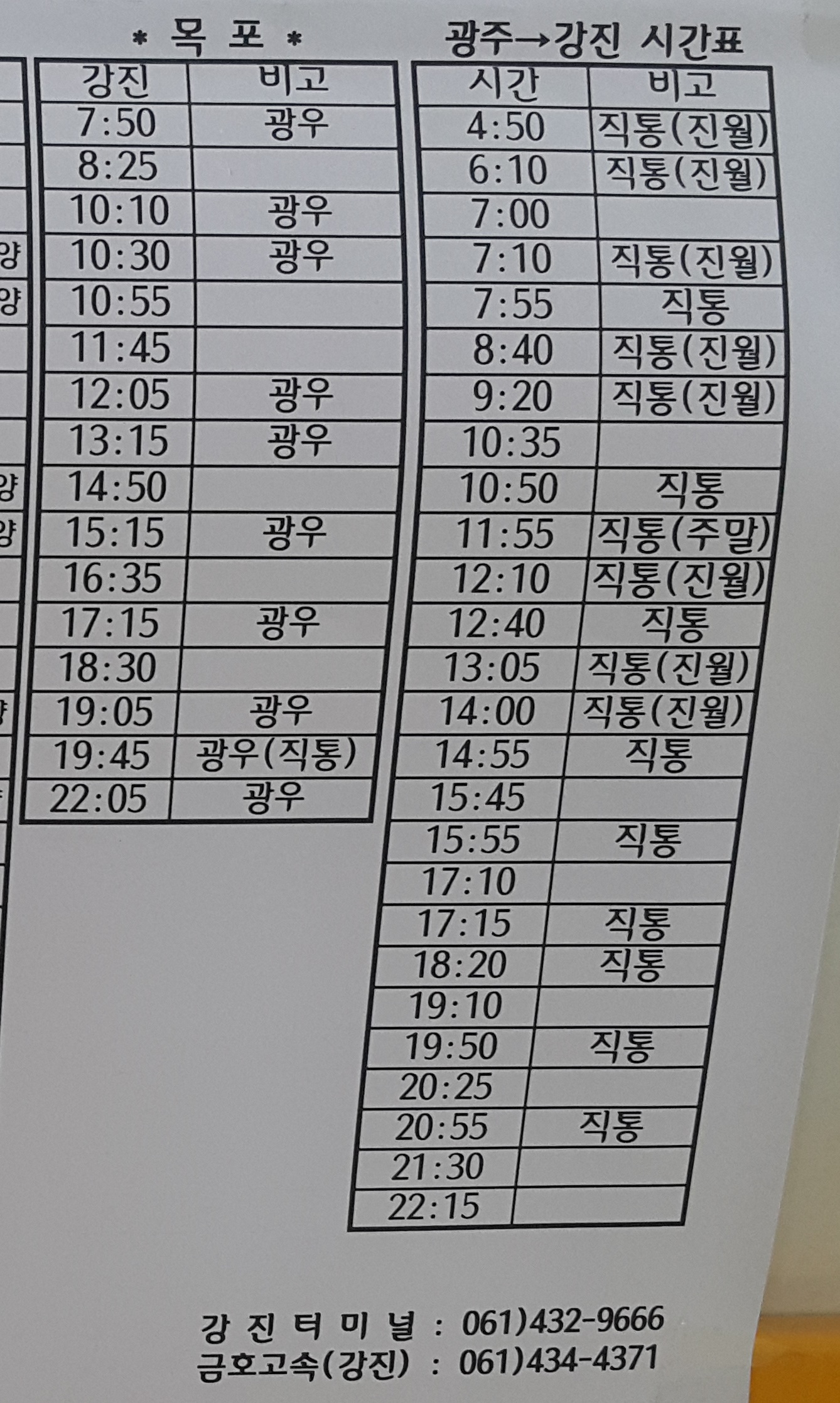 전화번호 :061-432-9666 강진고속,시외버스터미널