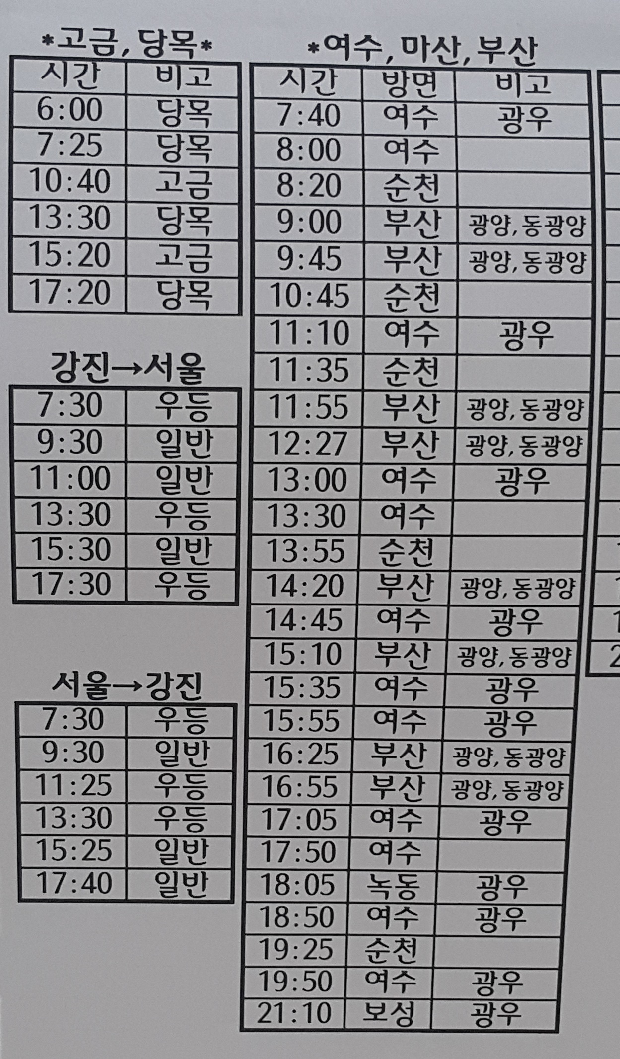 강진시외버스터미널 시간표 강진버스여객터미널