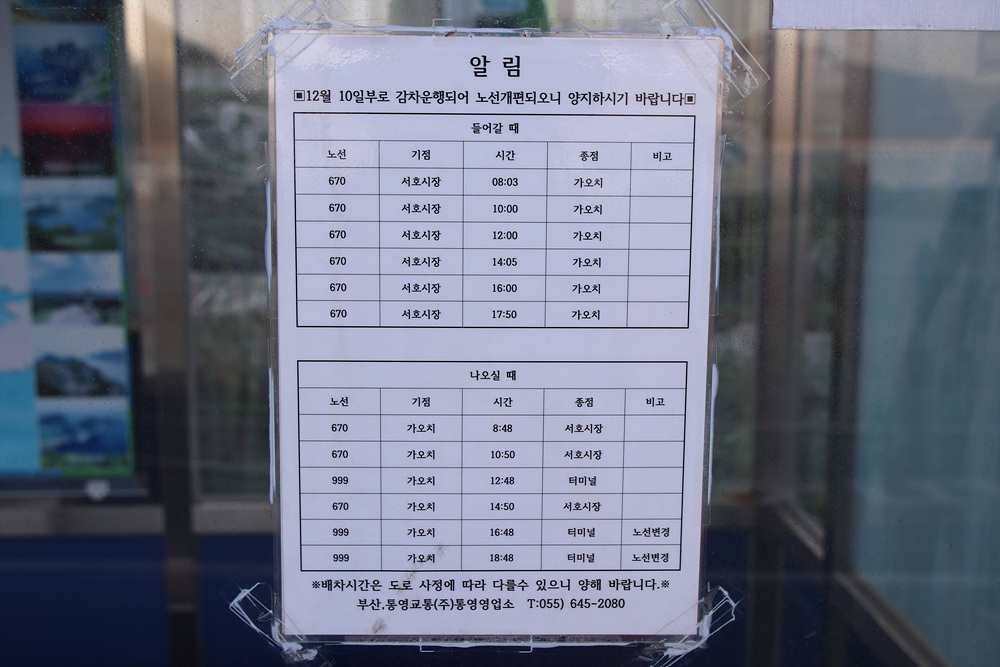 가오치터미널 버스정류장과 사량도여객섲터미널 모습
