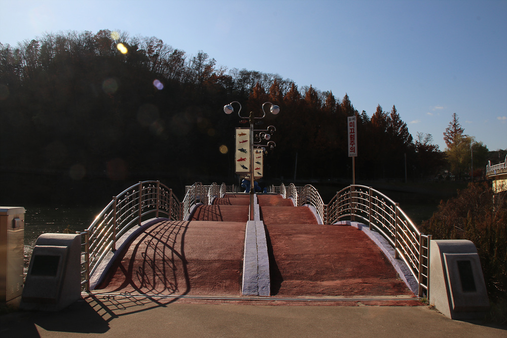 이 다리는 지난 2004년 다리 중앙에 있던 팔각정을 철거 후 구름다리를 확장하여 산책로를 조성하였습니다.'