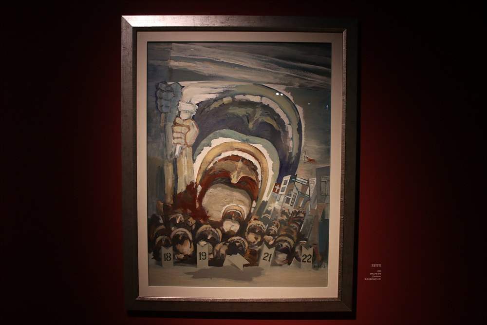 이 공간은 1960년 고등학교 3학년 때 4.19 혁명을 목격하고 그린 <사월의 함성>, "현실과 발언" 창립전에 출품했던