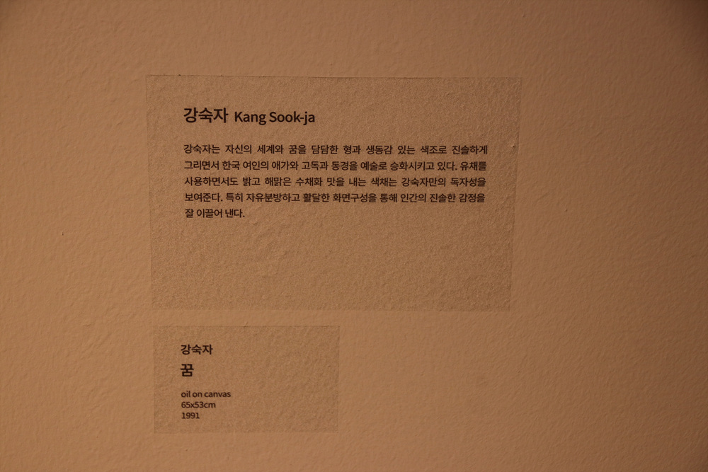 꿈꾸는 듯한 여인이 항상 등장하는 강숙자의 <꿈>(1991), <기쁜 우리 젊은 날>(2003)과 무수한 점으로 형상을