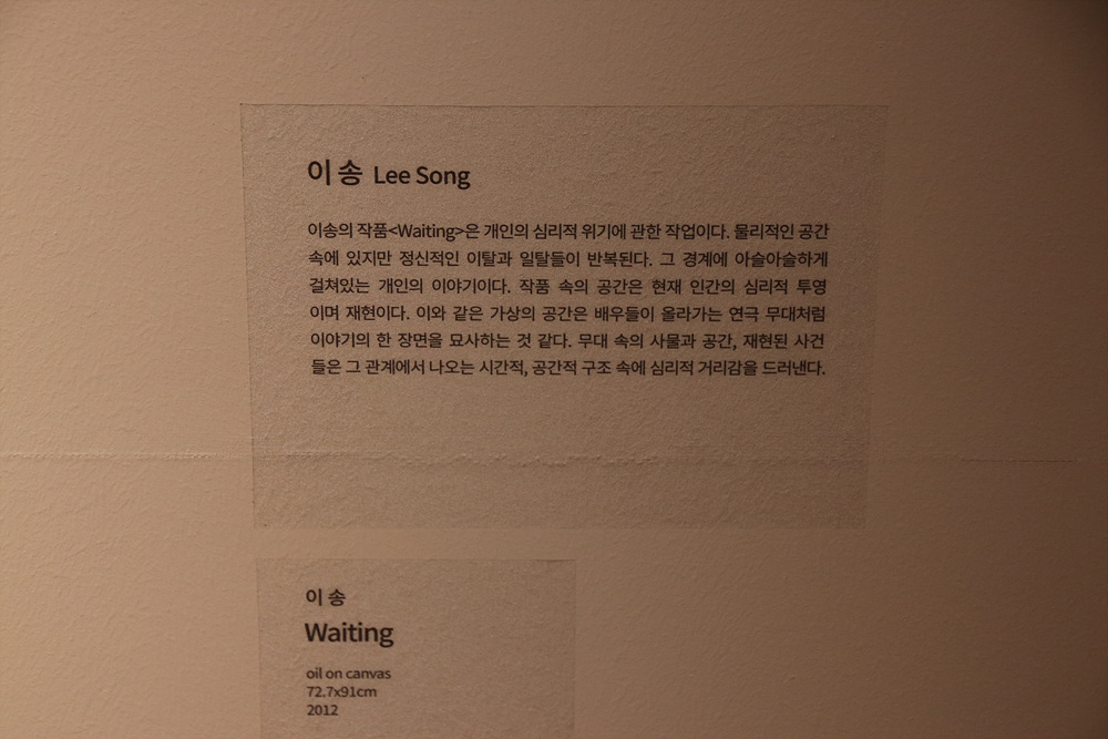 이인성의 <다른 세계>(2005), 이송의 <Waiting>(2002)등은 인간의 외로움, 고립감, 아쉬움, 설렘, 절망 등의