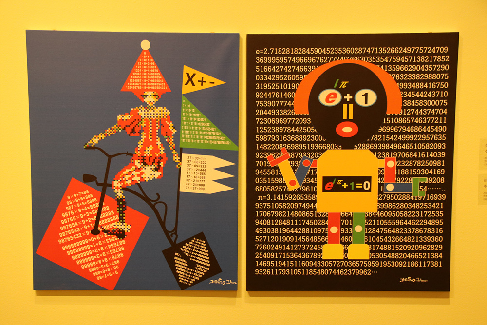 김용근 작가는 점과 선으로 만들어진 캐릭터, 말, 개미, 로봇 등 아이들이 즐거워하는 소재의 작품으로