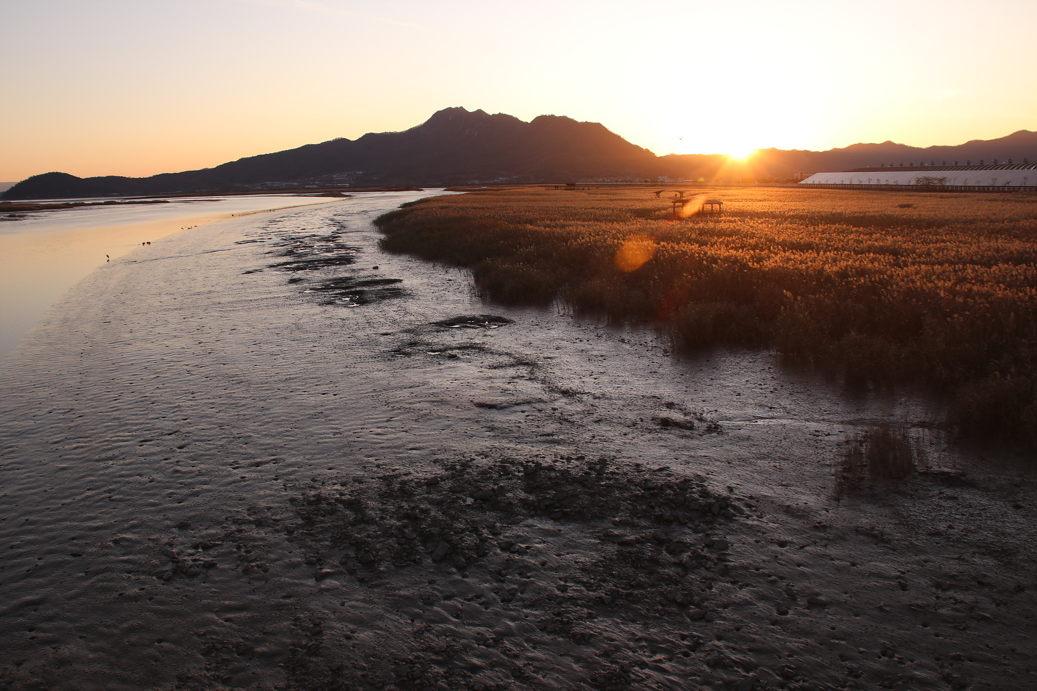 붉은 노을이 아름다운 강진만 생태공원에서 갈대와 춤을 추며