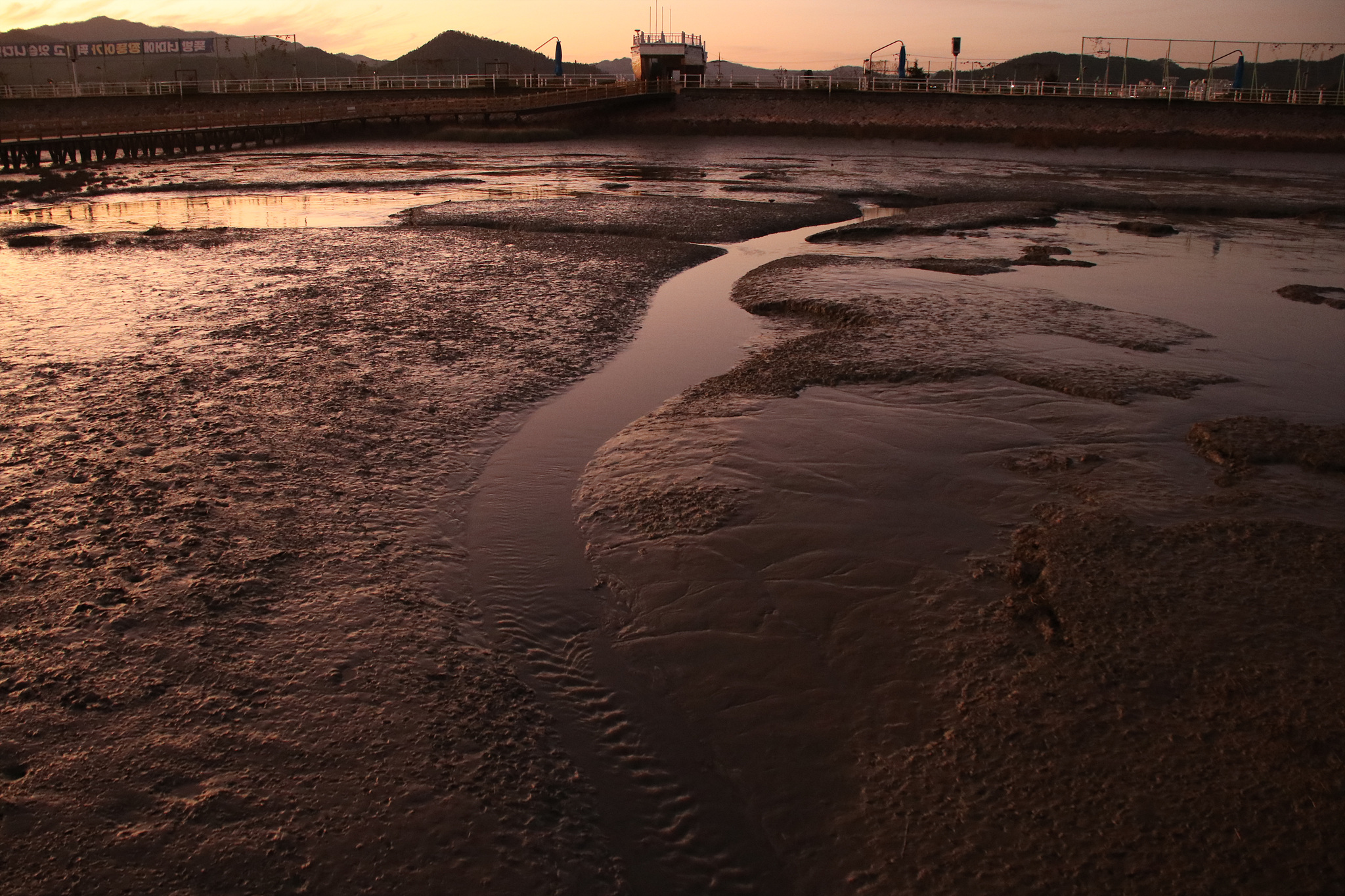 강진만 갯골로 흐르는 물의 물결이 마치 용이 움직이는 것 처럼 보입니다.