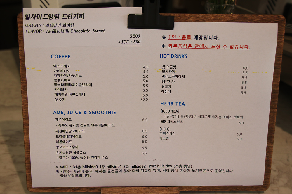 이곳 카페의 이름은 힐사이드양림이며