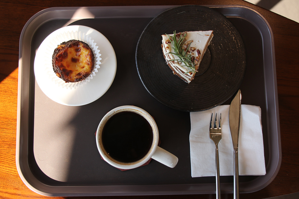 이어 주문한 커피와 케이크를 쟁반에 담아 들고 2층으로 다시 올라왔습니다.