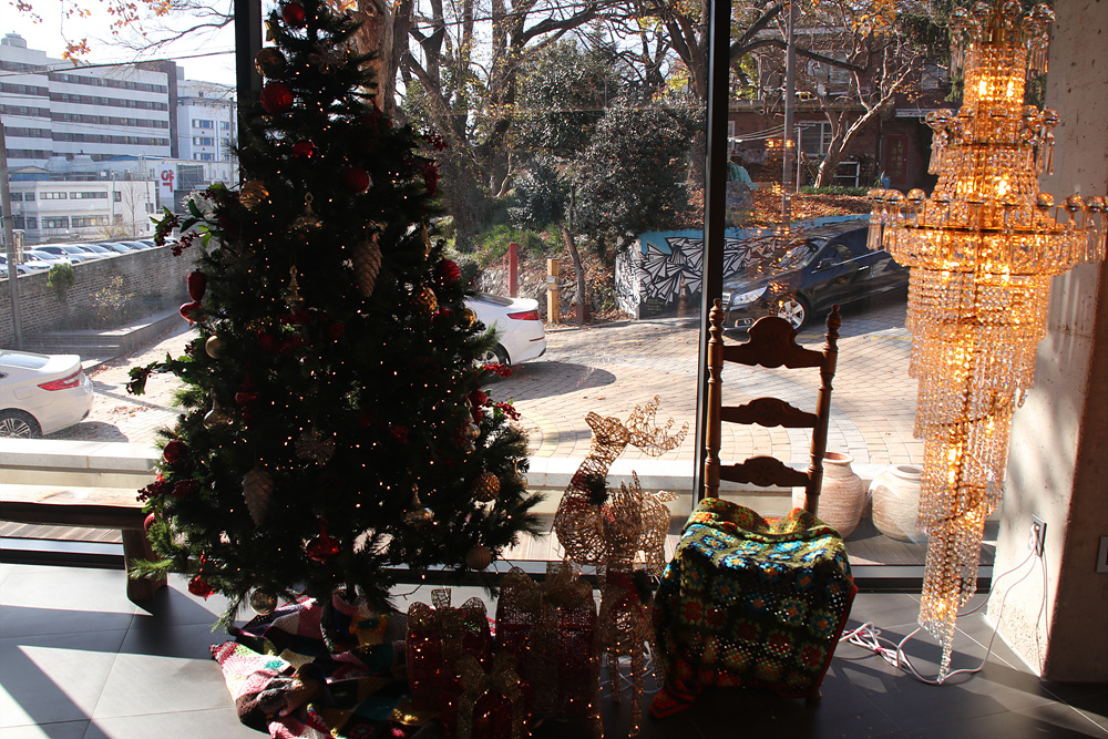 입구로 들어서면 크리스마스를 축하하는 크리스마스트리가 장식되어 있어