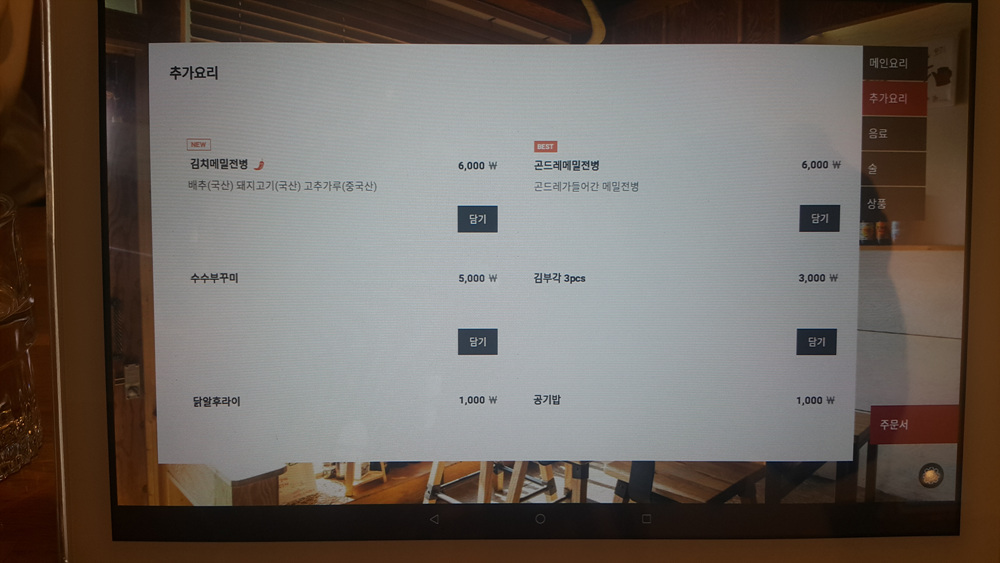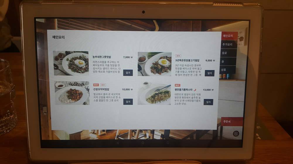 이제 메뉴를 준비해야 하는데 전자 메뉴판을 한번 자세히 바라보았습니다.