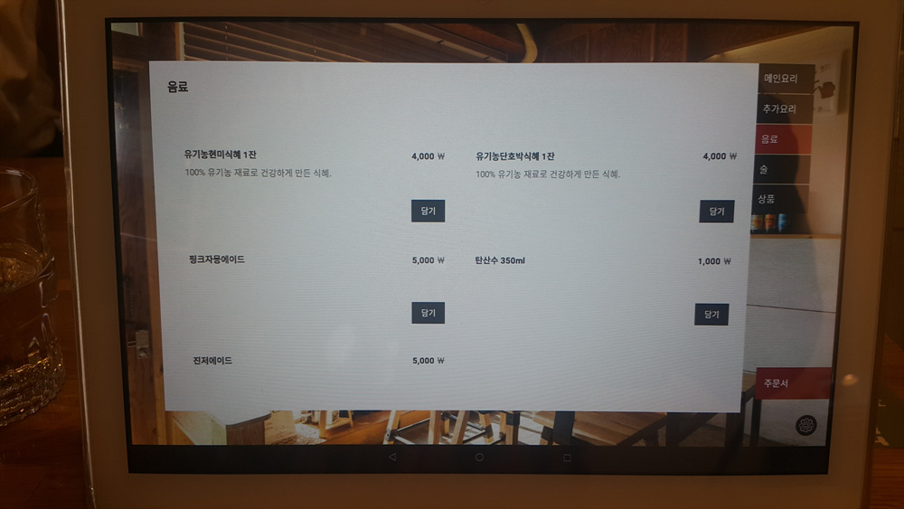 테이블에 패드가 있는데 이게 메뉴판이며 주문도 가능하다고 합니다.