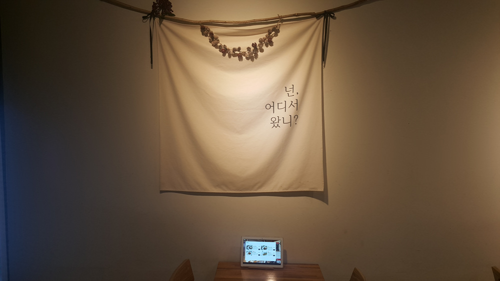 넌 어디서 왔니라는 문구가 적힌 벽 장식품이 귀여웠습니다.