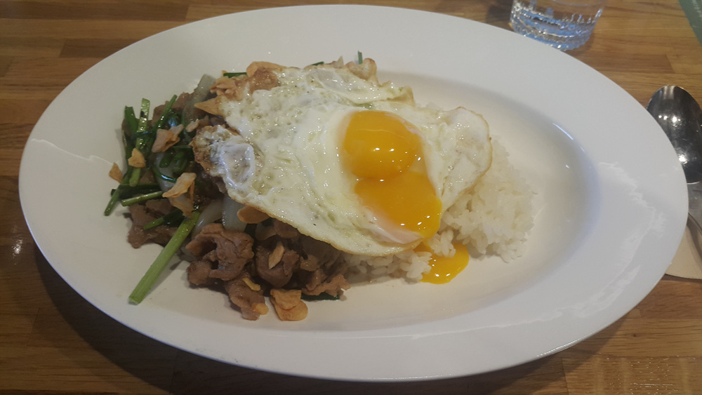 따뜻한 밥 위에 얹어 완성한 한 그릇.