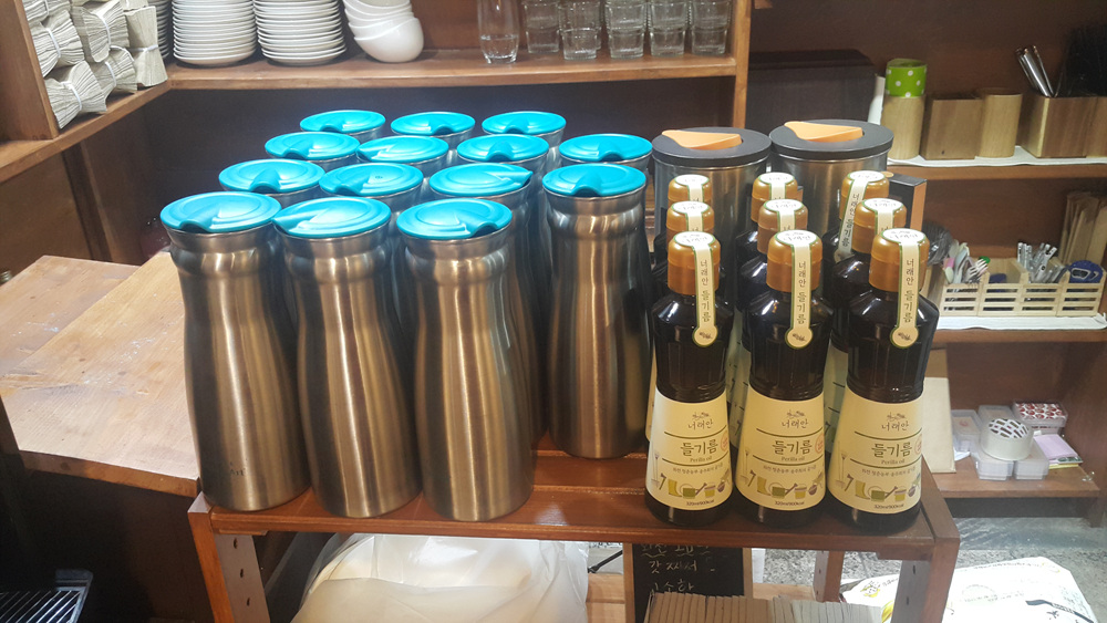 매데에 들기름이 진열되어 있는데