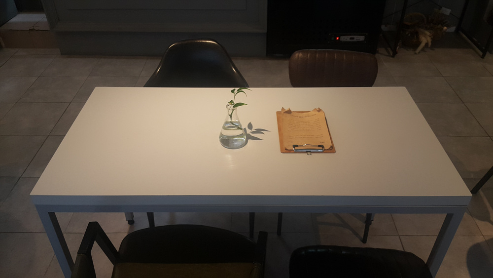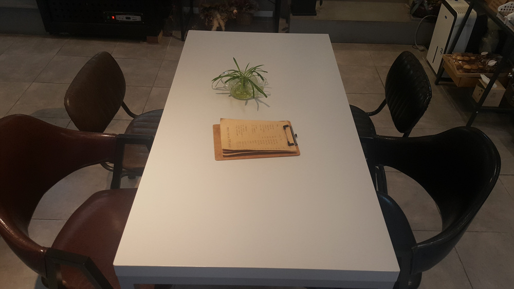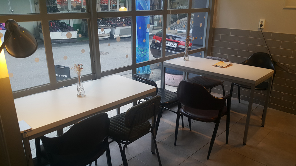 매장 안의 테이블은 심플하며 각 테이블마다 놓여있는 작은 꽃병은 포인트가 됩니다.