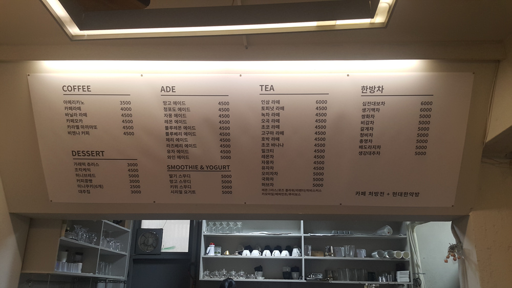 메뉴가 커피를 비롯하여 한방차까지 있는데